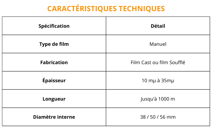 Choisissez notre film étirable manuel Cast et Soufflé pour sécuriser vos palettes et marchandises. Résistant, étirable et facile à utiliser, il protège vos produits contre la poussière, l’humidité et les chocs tout en accélérant vos opérations d’emballage.