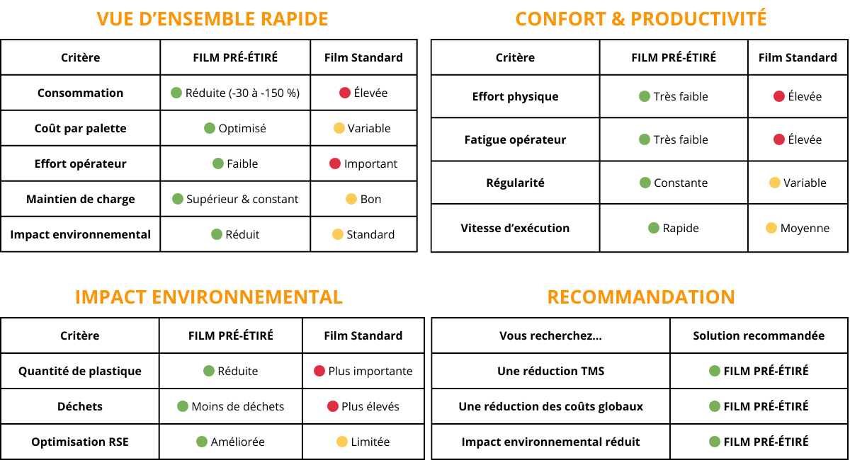 → Moins de film utilisé = réduction directe des coûts logistiques.